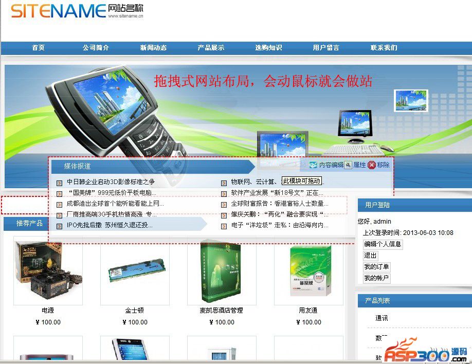 3、菜鸟级拖拽式布局网站,会动鼠标就会做网站