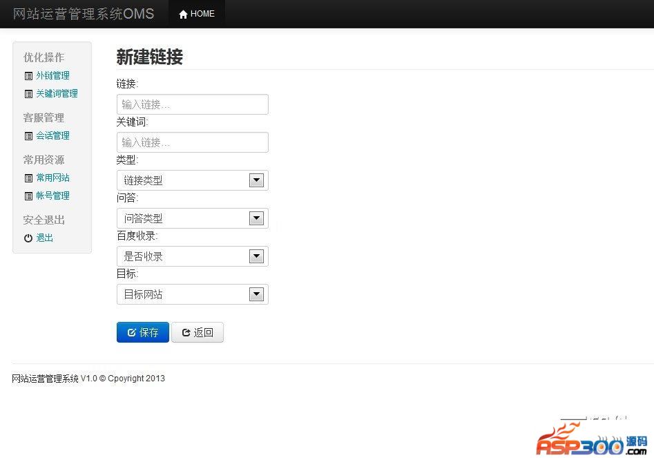 oms 运营管理系统可以管理的网站进行关键词统计整理,外链跟踪添加管理。