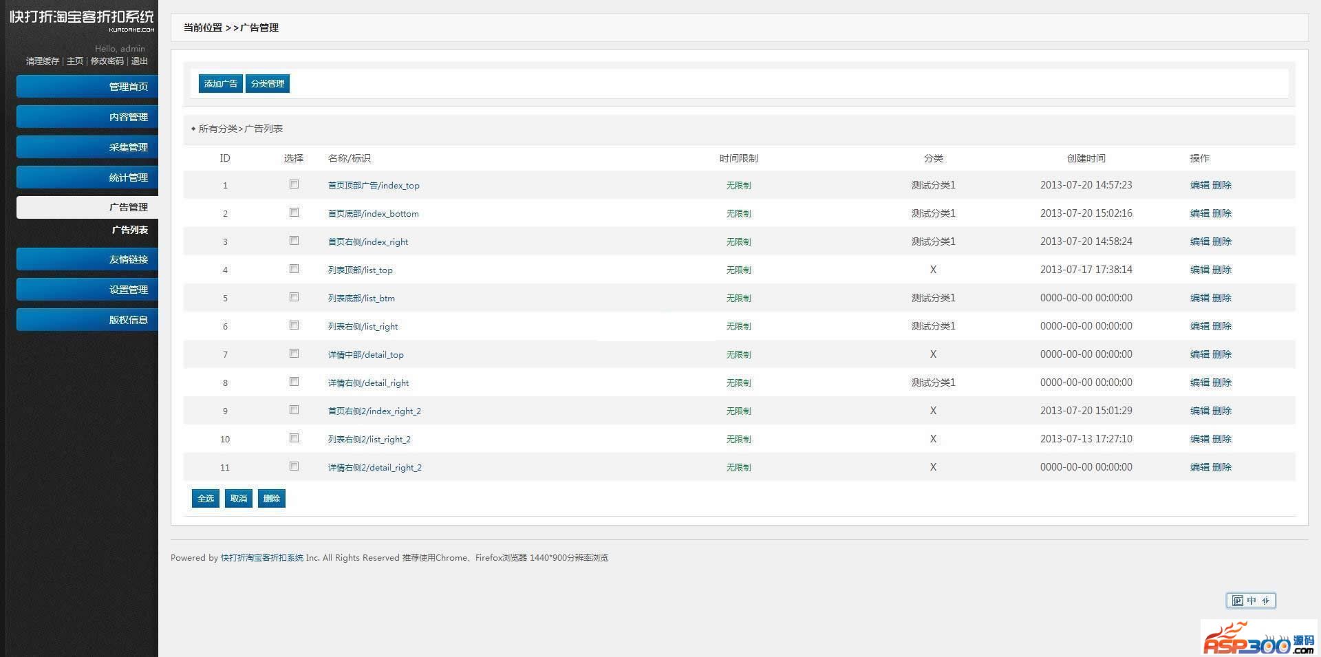 五、内置广告管理系统,网站后台具有广告代码添加功能,可以添加google adsense和百度联盟等各种联盟的广告,帮你淘宝客收入之外再增加广告收入。