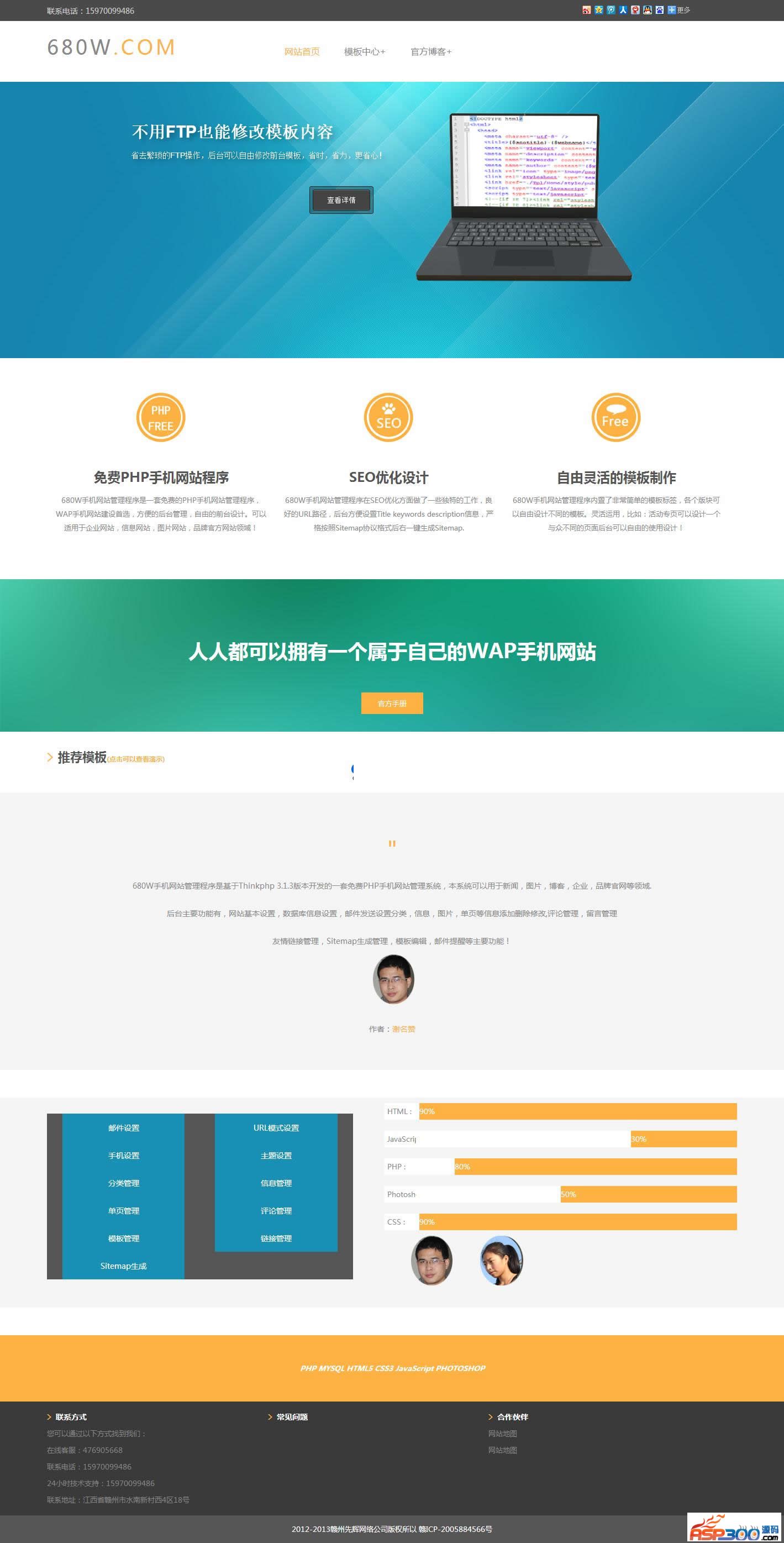 DIYWAP手机网站系统是一套针对移动互联网开发的适用于手机的WAP网站系统,系统主要携带后台自由设置手机网站二级域名功能,只要在空间绑定两个域名然后在域名解析你绑定的域名就可以在后台设置,比如:wap.diywap.cn 也就是说使用DIYWAP手机网站系统可以同时拥有两个网站,一个电脑网站一个手机网站,另外DIYWAP手机网站系统提供的模板都是支持手机屏幕和电脑屏幕的。