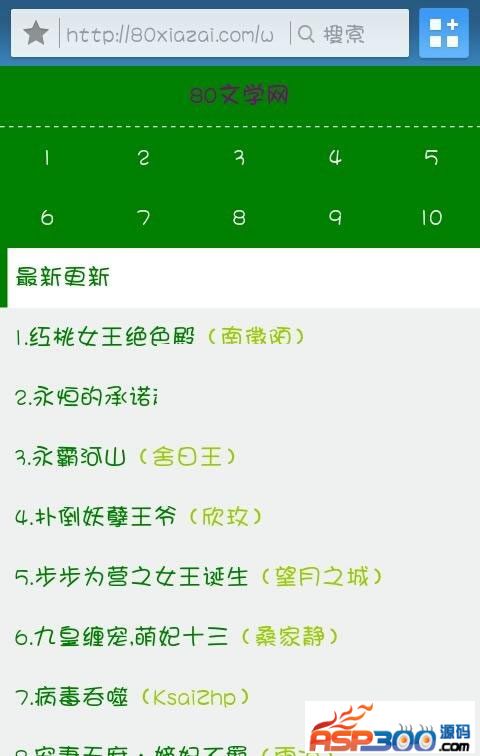 80手机文学网一个简单的手机小说采集系统 你的服务器必须支持CURL 自己修改config里面的文件 下载地址 下载地址已转移到新版网站,请点击左上角-首页,在新版网站搜索此套源码的标题进行下载。