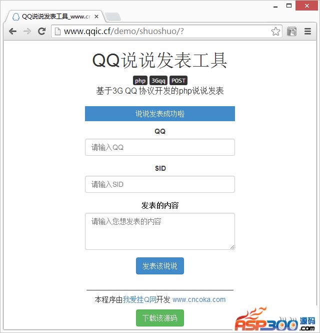 其中 {$sid}为sid {$qq}为QQ {$txt}为发表内容