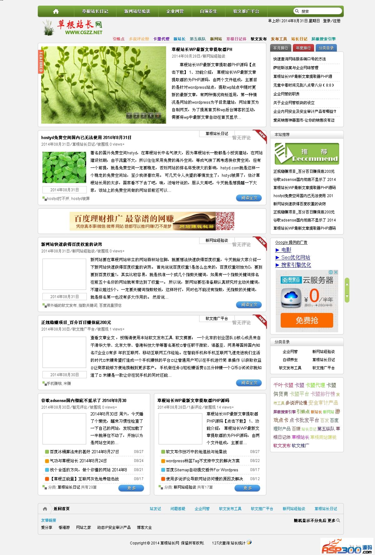 草根站长网WP最新文章提取器的使用可有效增加网站首页的活跃度,加快搜索引擎蜘蛛的来访和首页的快照更新速度。