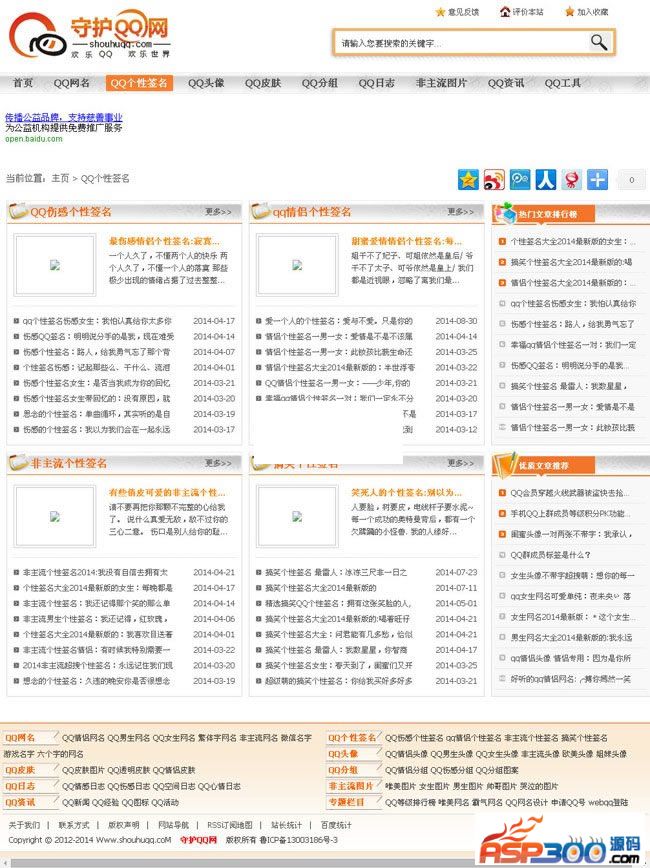 守护QQ网整站数据源码内核为DEDE 后台路径:域名/dede 源码包括数据2000多条 为纯手工添加,首先安装dede 路径为 域名/install/index.php 安装完毕进入后台依次点击 系统-数据库备份/还原-数据还原-这样数据就恢复了。 因图片数据较大,所以没有发布。有需要的请加我QQ索要 QQ:139651107