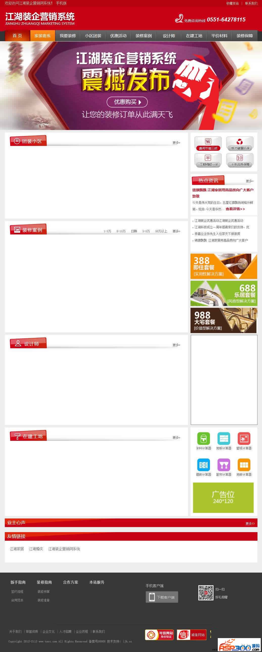 《江湖装企营销系统》是一款针对装修公司研发的企业营销的综合网站系统!不但能包装企业的网络形象,更能配合网络营销推广达到更好的营销效果!和传统企业网站相比装企营销系统具备传统企业网站不具备的营销功能(集成了很多报名表单,第一时间留下业主的信息,短信通知到装修公司)和营销数据分析(能精确分析网络营销推广成果的信息来源);《江湖装企营销系统》还配备了目前移动互联的3G网站及APP(让您的企业领跑在互联网营销上)!当然有了《江湖装企营销系统》并不代表他会自动营销,它只是提供了更符合网络推广赢得效果的工具!它是配合网络营销的一种利器!