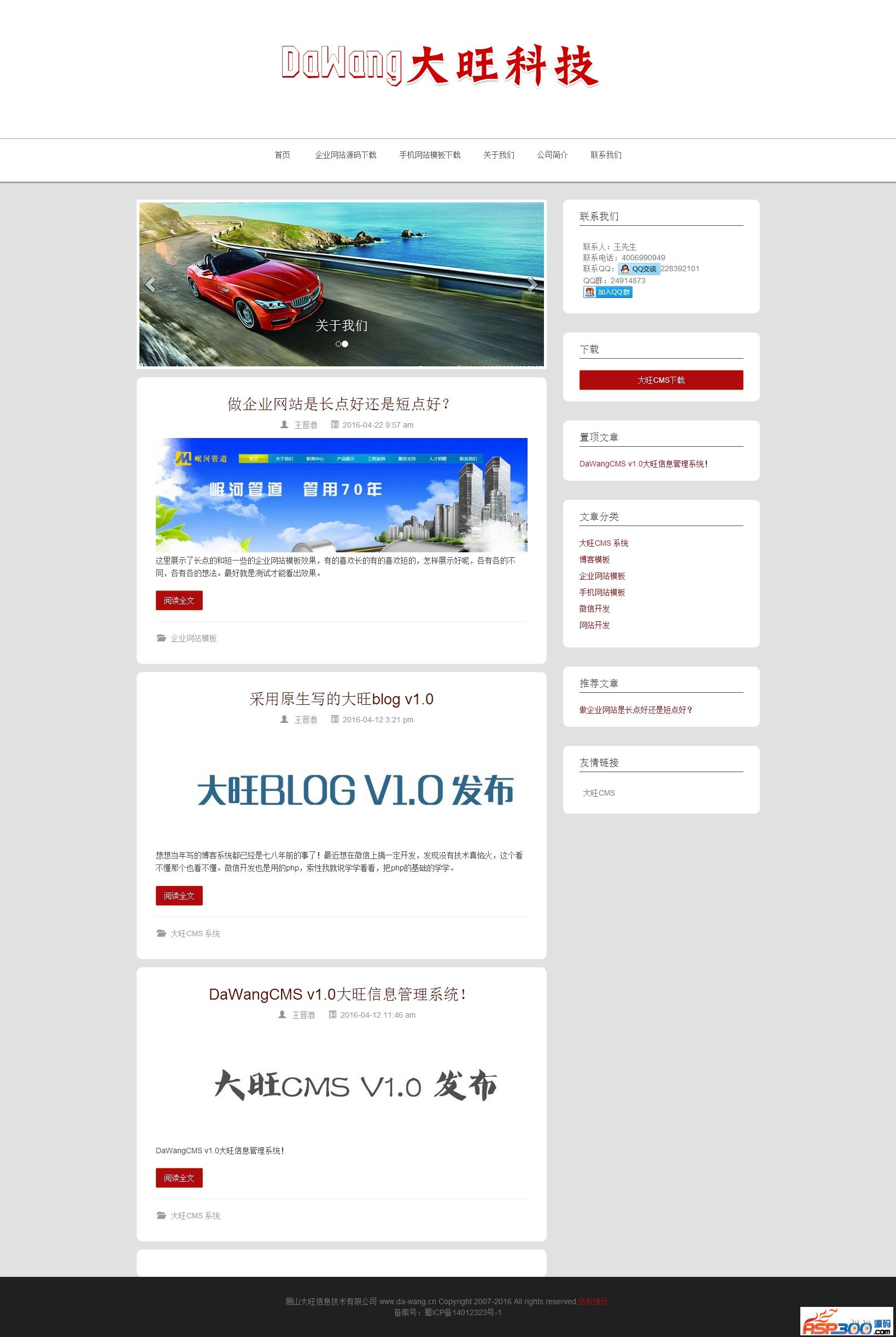 大旺信息管理系统DaWangCMS是一款采用thinkphp3.2.3开发的免费开源的企业网站电脑版、企业网站手机端和移动网站开发系统,可以轻松搭建企业网站手机端多种手机端模板轻松使用。 下载地址 下载地址已转移到新版网站,请点击左上角-首页,在新版网站搜索此套源码的标题进行下载。