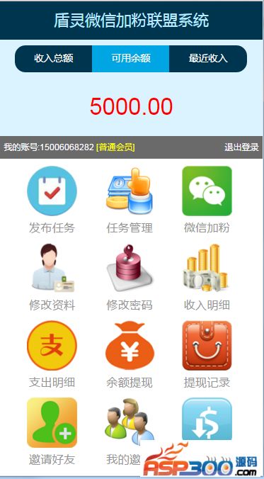 该系统主要用于微信粉丝推广,主要针对微信粉丝需求的人士以及普通会员,普通会员在注册后,需将自己的微信二维码进行上传,每个人可上传最多3组二维码图片,单价由系统管理员在后台进行设定,需要微信加粉的人员可通过注册账号,在线购买会员的二维码进行添加微信好友,在购买后的页面,即可看到微信号码以及微信二维码图片,如在微信端运行,则可以长按二维码进行添加好友;一般购买粉丝的为全兼职的微商相对居多,解决了微商加好友困难的问题,也同时可以为广大会员带来一定的收益;平台可设定自己的盈利差价;