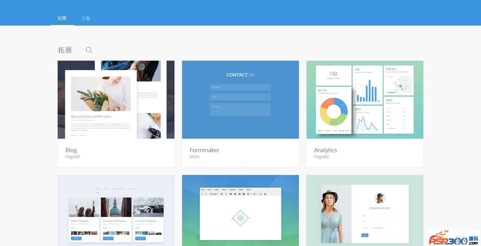 PageKit CMS轻量级建站系统是一个基于模块化、轻量级的CMS建站系统,基于Symfony框架和Razr模板引擎,目前支持Mysql或者Sqlite作为数据库,设计时髦,结构整洁;相比较起来wordpress,drupal更加优秀。