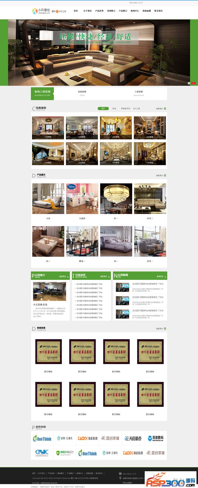绿色装修公司网站模板_小兵装修系统简介