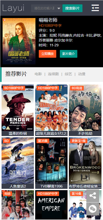 苹果cms V10 Layui自适应模板 简洁响应式影视视频网站