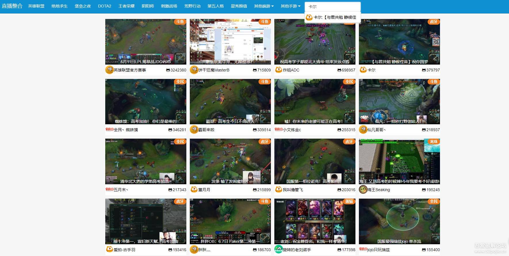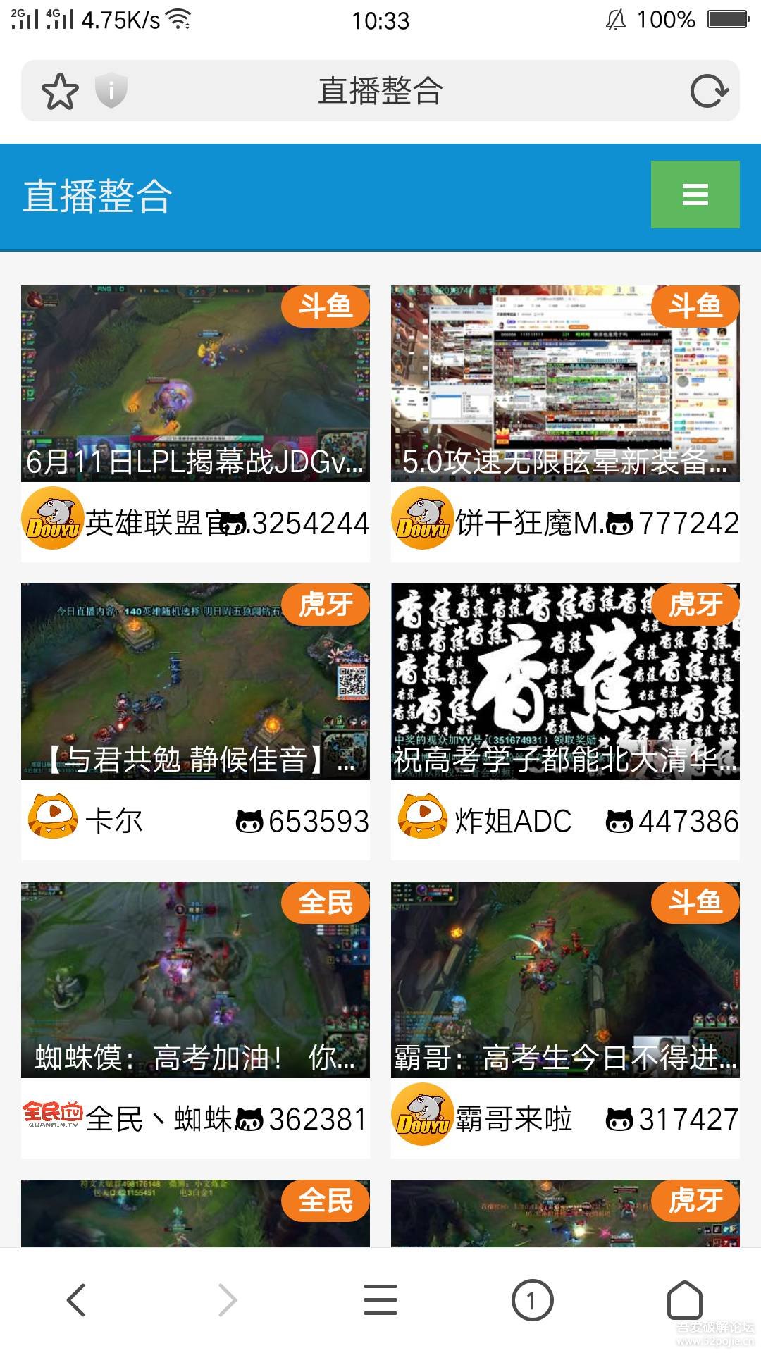 整合了虎牙、斗鱼、熊猫、战旗、全民、龙珠六大平台; 在线采集,无需数据库; 带搜索功能,快速定位自己喜欢的主播; 需要在PHP5.5或以上版本运行; 安装说明: 上传即可,无需安装 ID:63135 声明:本站所有资源均来源于互联网收集,仅供学习参考使用,如若本站内容侵犯了原著者的合法权益,可联系我们进行处理。