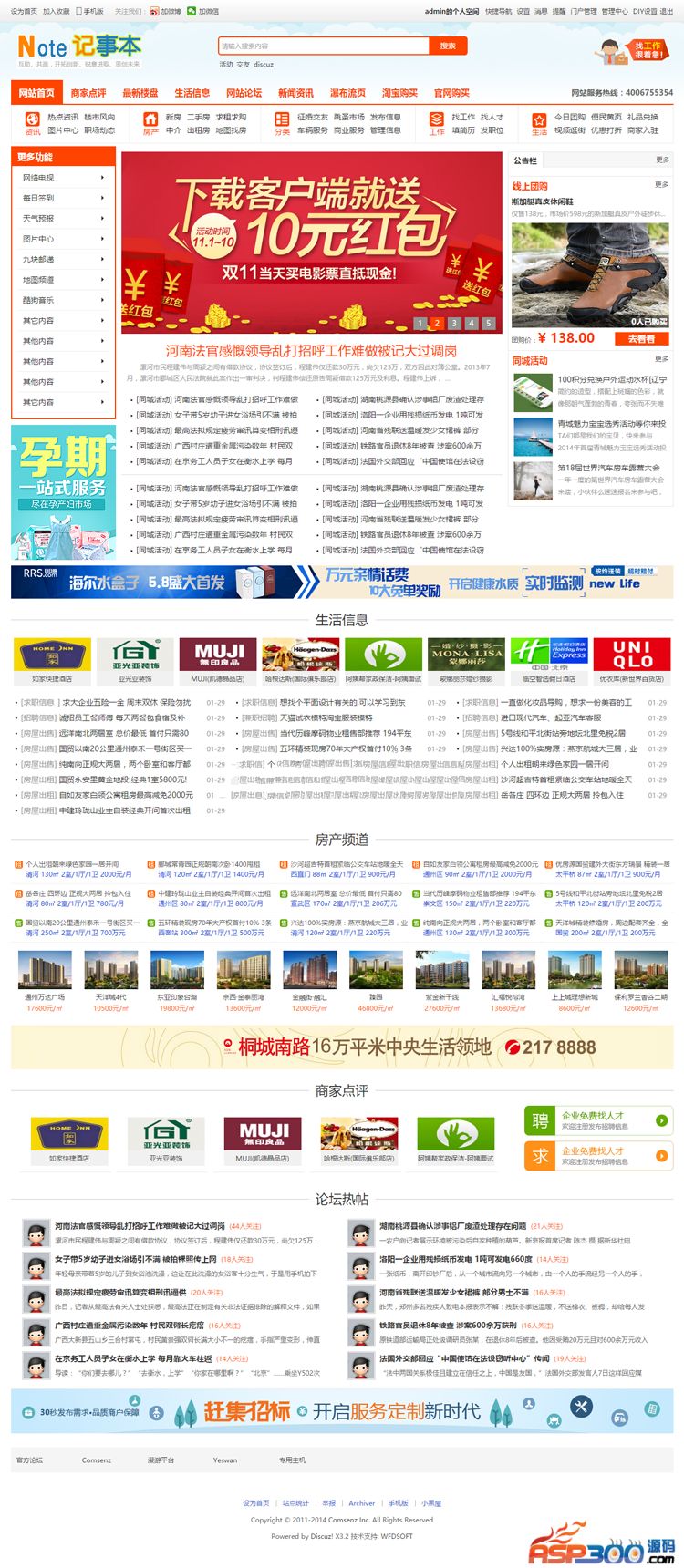 仿163K分类信息地方门户discuz模板。相信163k地方门户系统大家都知道的,此套模板正是仿的这个系统的界面,设计风格大气简约时尚,特别适合地方门户类网站使用。不过此套模板的重点并不在这里,而是在强大的分类信息系统,而这个分类信息系统并不是通过插件实现的,而是用本身discuz系统就有的功能美化出来的,在这里不得不感叹discuz功能的强大。此套模板包含的分类信息相当的多,基本上你能想到和知道的分类信息这套模板里都有了,而且功能是很强大,界面是很美观的。完全满足一个大型地方门户网站的需求,相当的棒。模板和分类信息功能经过测试,完整无错,大家可以放心下载使用。模板完全开源,绿色模板,无域名限制!所以大家不用担心应用中心无法安装的提示,更不用破解discuz系统,直接上传即可安装!并且可用于多个网站!无限制使用!适用于Discuz! X3 X3.1 X3.2最新版本!