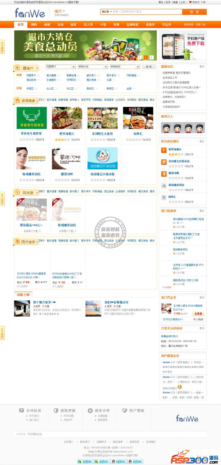 源码说明:方维为你打造最具活力的生活消费体验分享网站,为您提供城市美食、购物、休闲、娱乐等诸多商户的基本信息,以及消费情报,生活资讯,打折信息等城市消费指南。 线下商务的机会与互联网结合在了一起,让互联网成为线下交易的前台。这样线下服务就可以用线上来揽客,消费者可以用线上来筛选服务,还有成交可以在线结算,很快达到规模。最重要的是:推广效果可查,每笔交易可跟踪。 基于店铺周边的受众,建立一个交叉营销体系。商圈1-3公里范围内的餐饮、美发、KTV、健身房、专卖店等消费服务业商家,通过地理位置匹配,顾客消费群匹配,获取所属店铺周边的潜在客源。