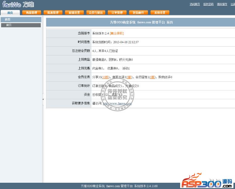 方维o2o商业系统V2.4.1168多城市商业版,程序采用PHP+MYSQL开发,是一套集社交、本地、移动打造的生活消费体验类分享网站程序,主要提供城市美食、购物、休闲、娱乐等诸多商户的基本信息、以及消费情报,生活资讯,打折信息等城市消费指南。有了该系统,您也可以建立自己的“大众点评”网。