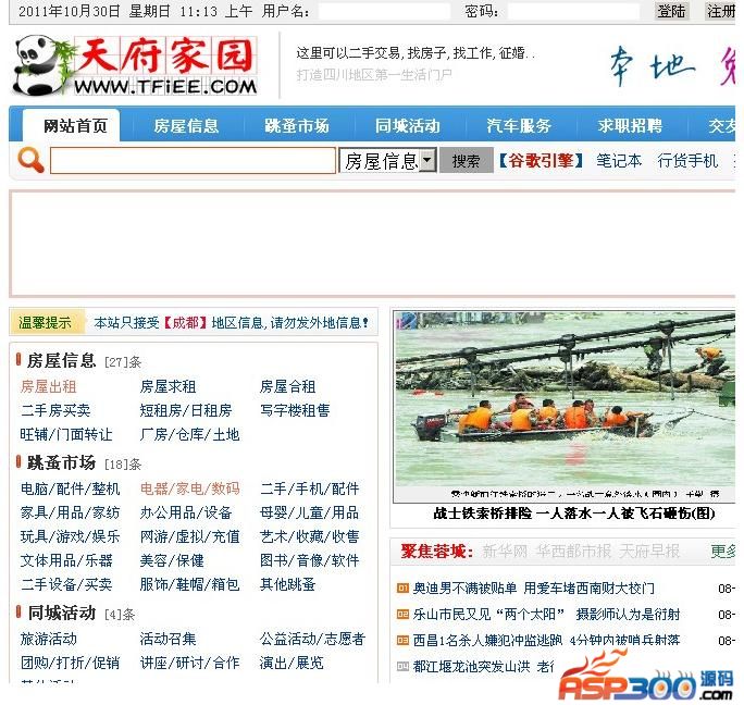 天府热线——四川电信地方生活门户网站,一个典型的地方门户网,程序核心:帝国CMS(PHP+MYSQL)。