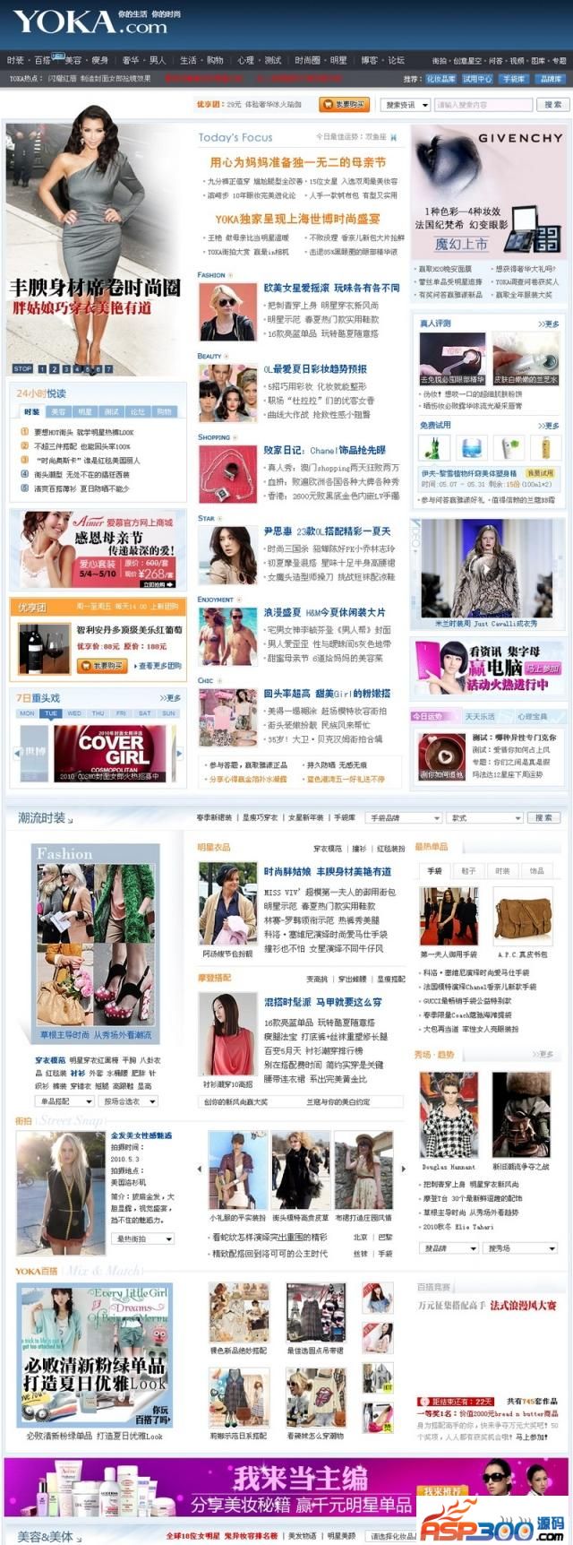 本仿YOKA时尚网仿全了YOKA11个频道: 时装配饰、美容、瘦身、奢华、男人、生活、购物、心理、明星、图库、时尚,涵盖了现代人关注的时尚话题。