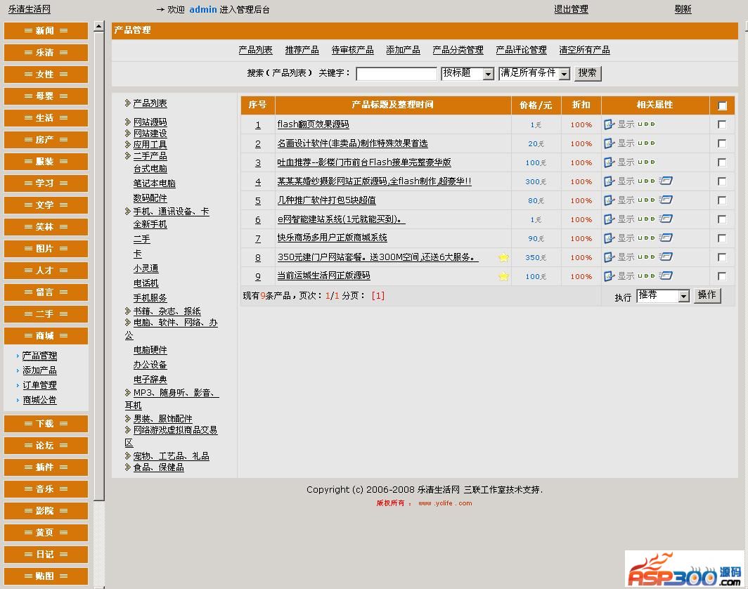 网站为一站通程序,即一个管理员一次登陆可管理所有31个栏目的内容,容易管理;用户一次注册后可使用所有功能,使用简单;网站首页和所有栏目都经过修改和美化,适合做地方性综合站点。