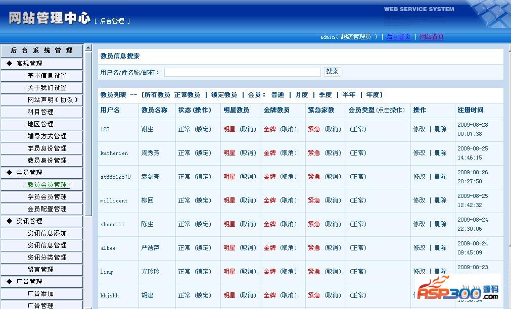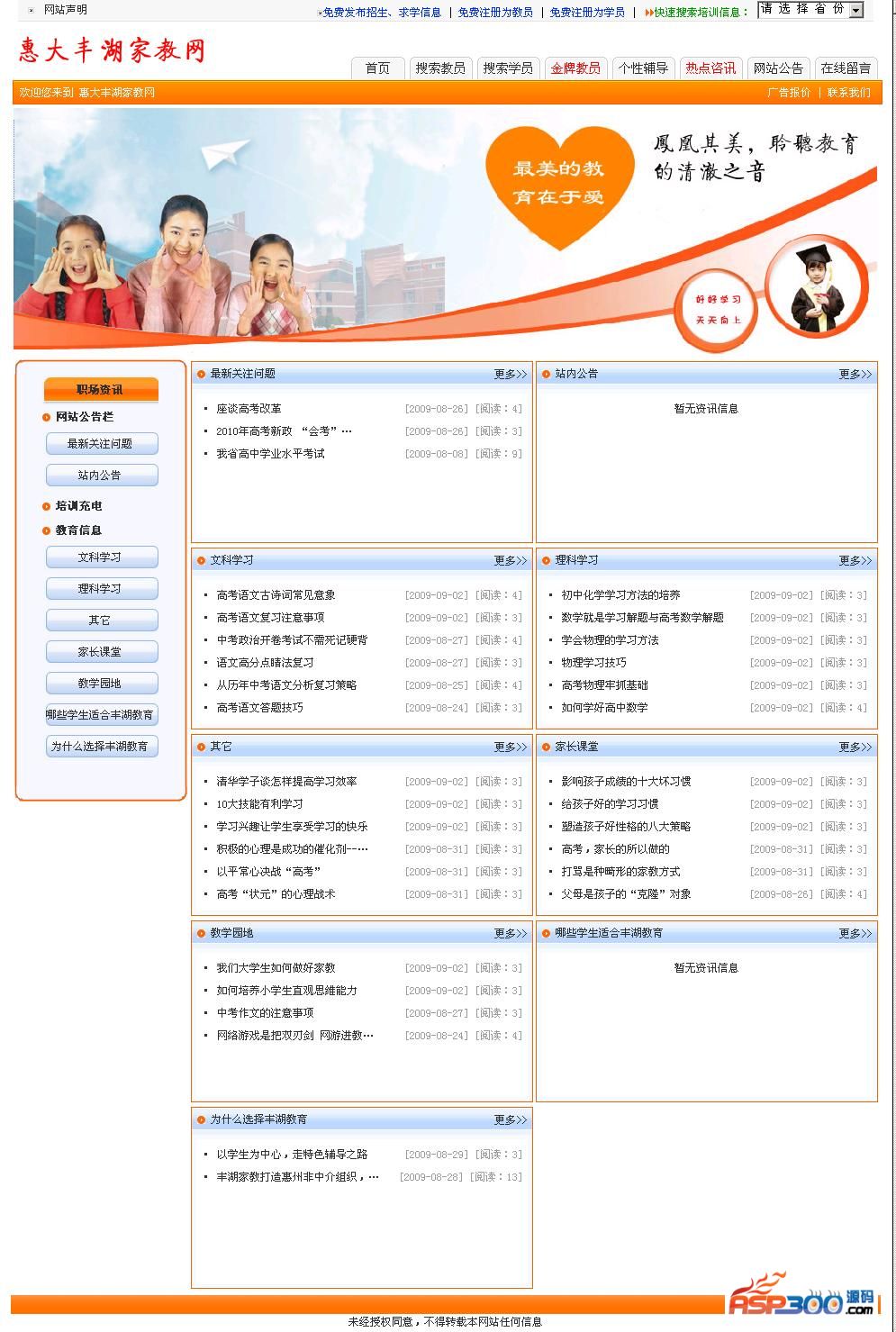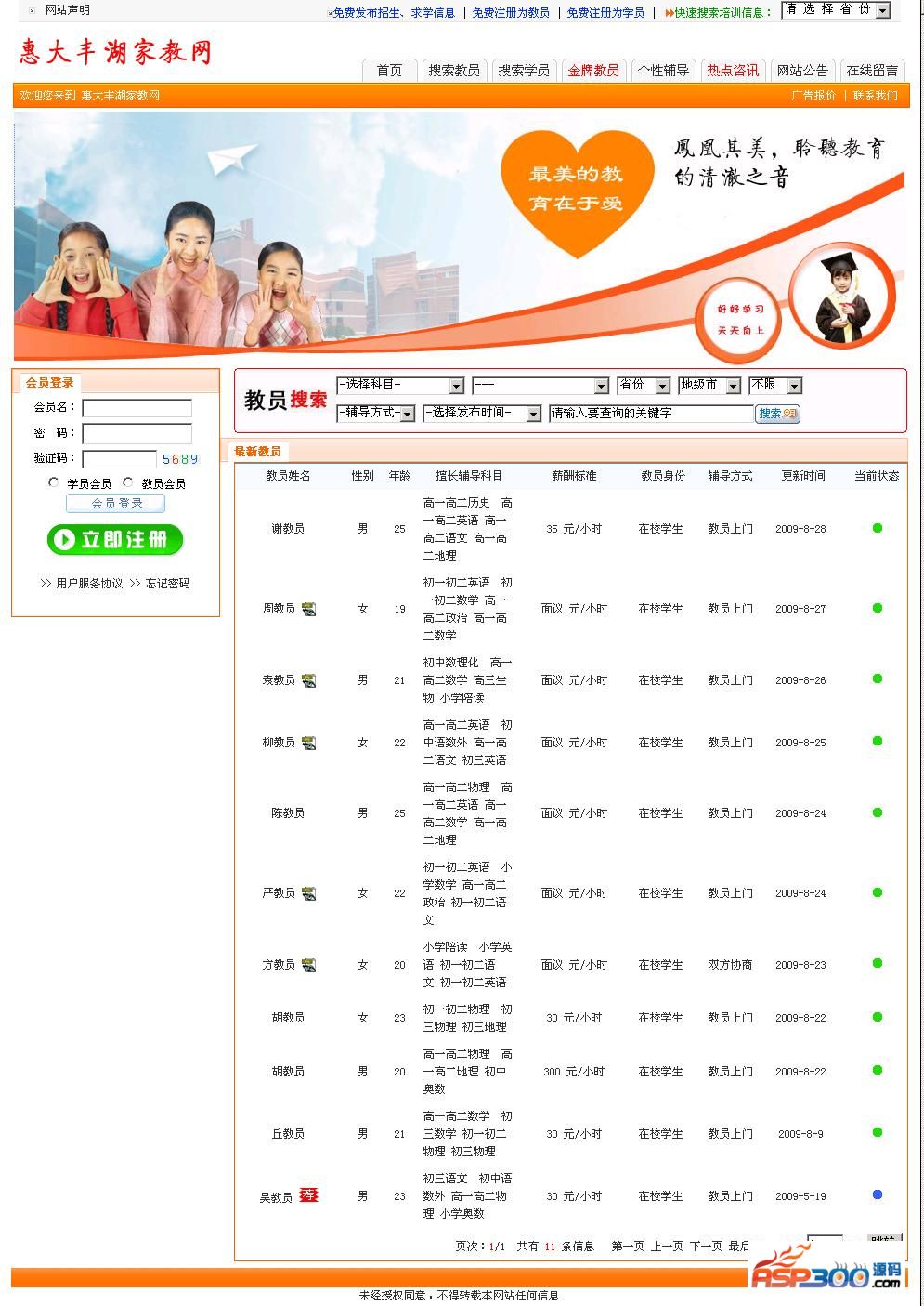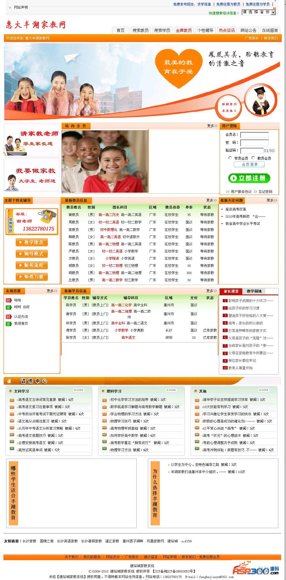 此版程序是针对中介公司或有中介需要的网站设计。程序实现网站会员(教员/学员)可任意免费注册,可在线预约教员或学员, 网站根据教员或学员为其推荐相关学员或教员。网站能方便设置会员是否已被安排或预约。并能根据教员接单表现给网站方公证评价。能方便后台安排,设置各种参数,如地区,学校,会员家教记录,评价,会员安排情况,会员证照审核(会员自主在线传相关各处证照,方便审核),会员资金使用记录等。