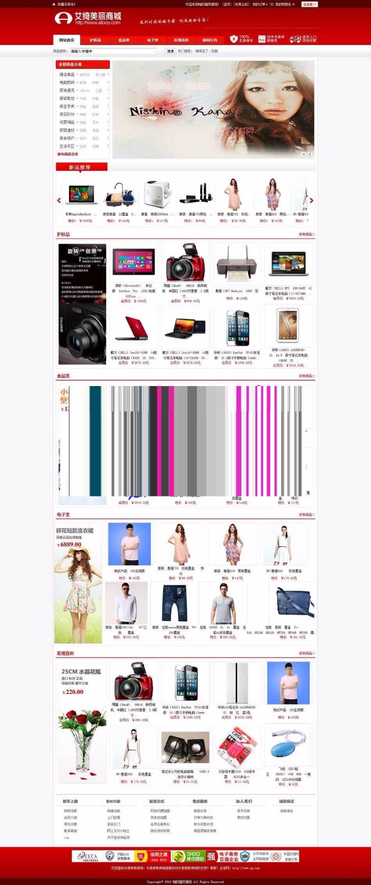 艾绮美丽商城整站源码,asp大型商城系统网站源码,大气红色模板风格