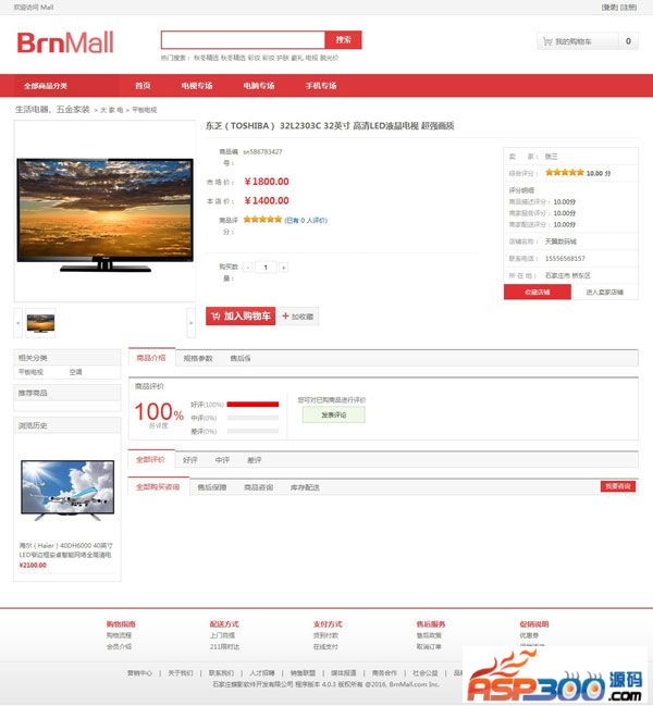 最新BrnShop网上商城系统单店版源码分享大家,基于Asp.Net MVC开发的独立商城系统源码下载,界面美观,功能非常强大,全开源!
