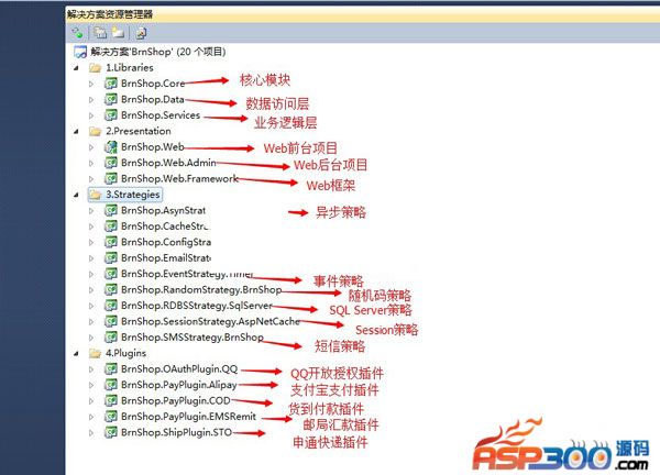 3、数据库连接字符串在“\\Presentation\\BrnMall.Web\\App_Data\\rdbs.config”文件中。