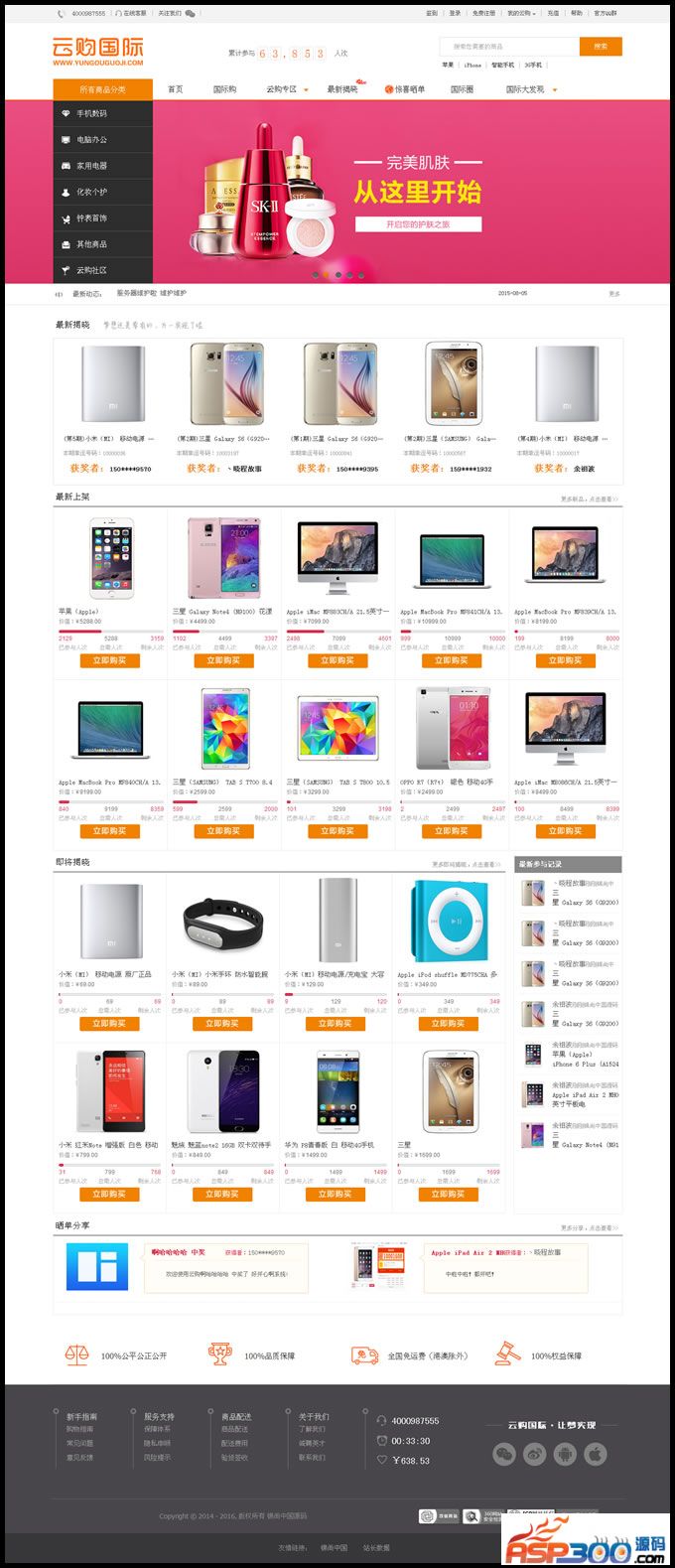 云购国际是一种全新时尚的网络购物模式,云购国际,一 元夺宝,惊喜无限.1元即可参与购物,全场商品,手机、电脑、数码产品等等,一 元任你购!亲测,完美无错,可真实运营! 运行环境: php5.3/php5.4+认证服务号+Mysql ID:61179 声明:本站所有资源均来源于互联网收集,仅供学习参考使用,如若本站内容侵犯了原著者的合法权益,可联系我们进行处理。