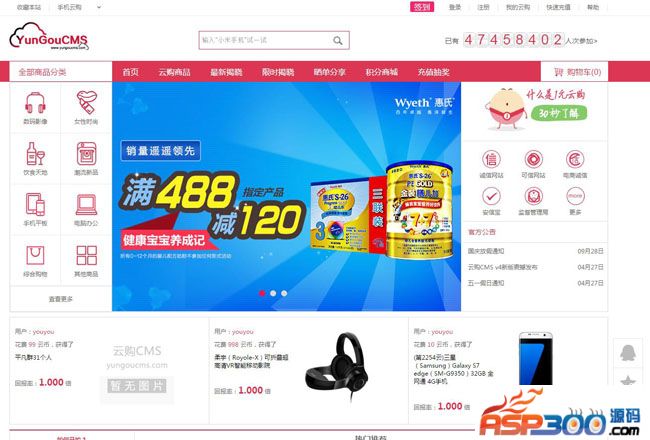 云购夺宝系统是一套创新的PHP开源云购源码,精仿1元云购、1元夺宝、云购全球前台模板,同时还兼顾了各大浏览器的兼容性,拥有70多项首创功能,是目前国内被竞争对手模仿最多的云购系统提供商;