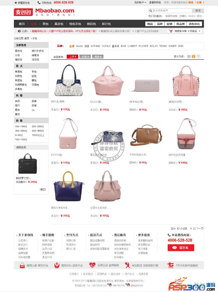 源码说明:ecshop2013 麦包包官方商城网站模板升级版;是某工作室为客户定制的麦包包商城模板,做了一些二次开发,非常完整,无任何限制,极难得的资源!商城模板界面简洁漂亮,适用于箱包商城,女性用品商城,服装商城等网站建设。