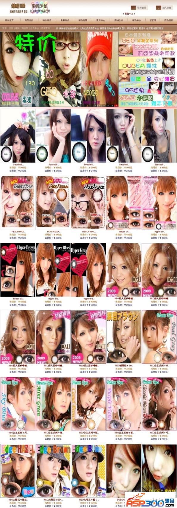 彩色隐形眼镜商城——漂亮、时尚的MM喜欢逛的网站,非一般流行时尚,ASP+ACC