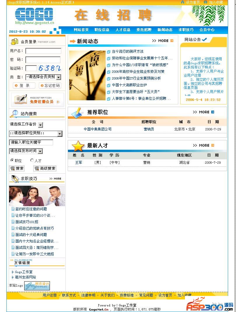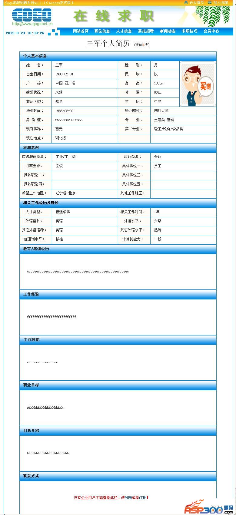 4、强大的用户互动功能:支持个人职位库、企业人才库、站内短信(支持后台群发)、人才\\职位高级搜索