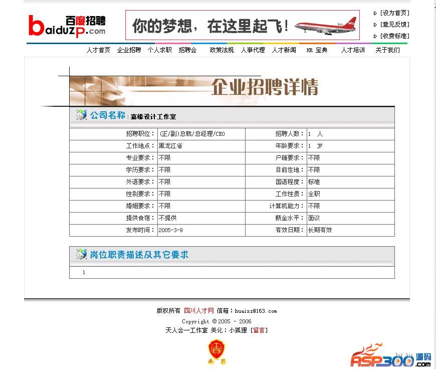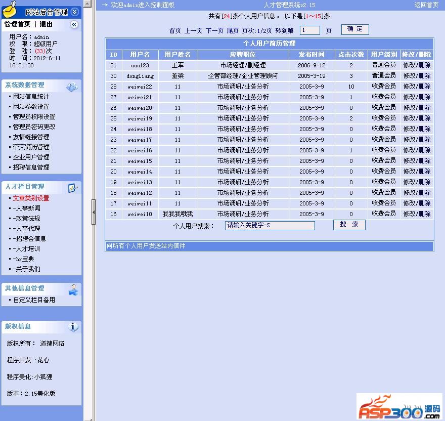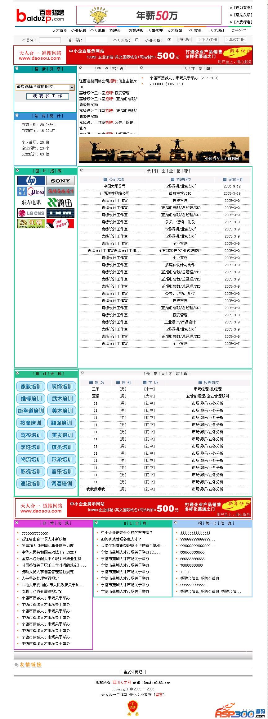 欢迎您使用地方人才门户网代码,适合做行业性人才网,也可以做地方性人才门户站,目前主要功能有: