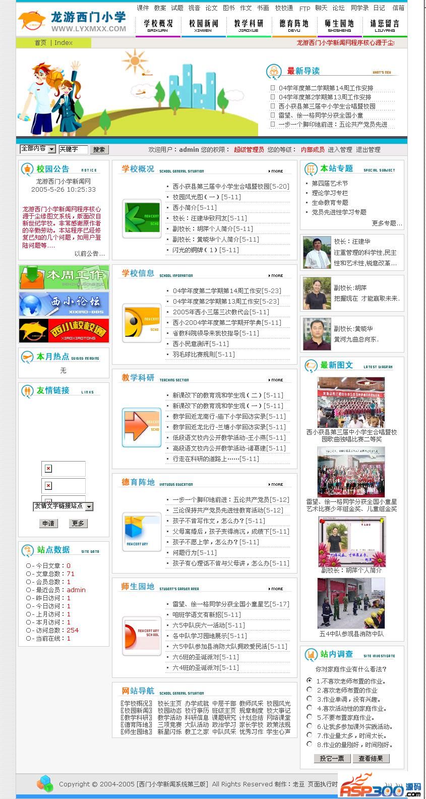 一.龙游西门小学新闻网(美化版) 本站程序核心源于尘缘图文系统,版面改自新世纪学校。非常感谢原作者的辛勤劳动。本站程序已 经修复已知的几个问题,如下: 1.修复用户登陆问题. 2.修复上传安全漏洞. 3.删除多余代码,速度更快. 4.添加防下载功能. 后台/admin/login.asp 用户名admin密码admin888 ID:43426 声明:本站所有资源均来源于互联网收集,仅供学习参考使用,如若本站内容侵犯了原著者的合法权益,可联系我们进行处理。