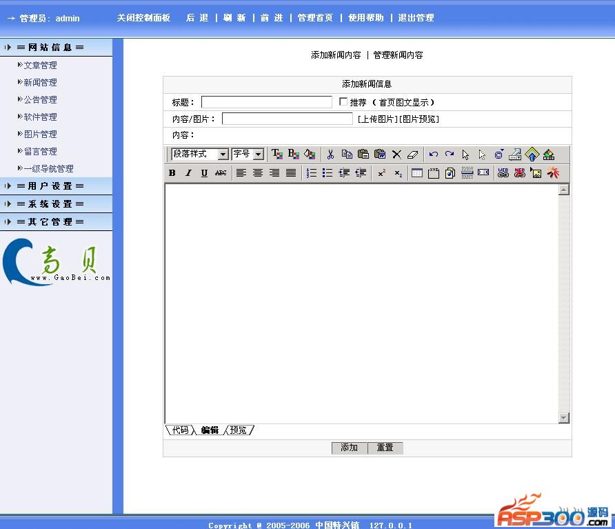 产品、新闻、图片、留言、公告等等为一体,集成所见即所得+