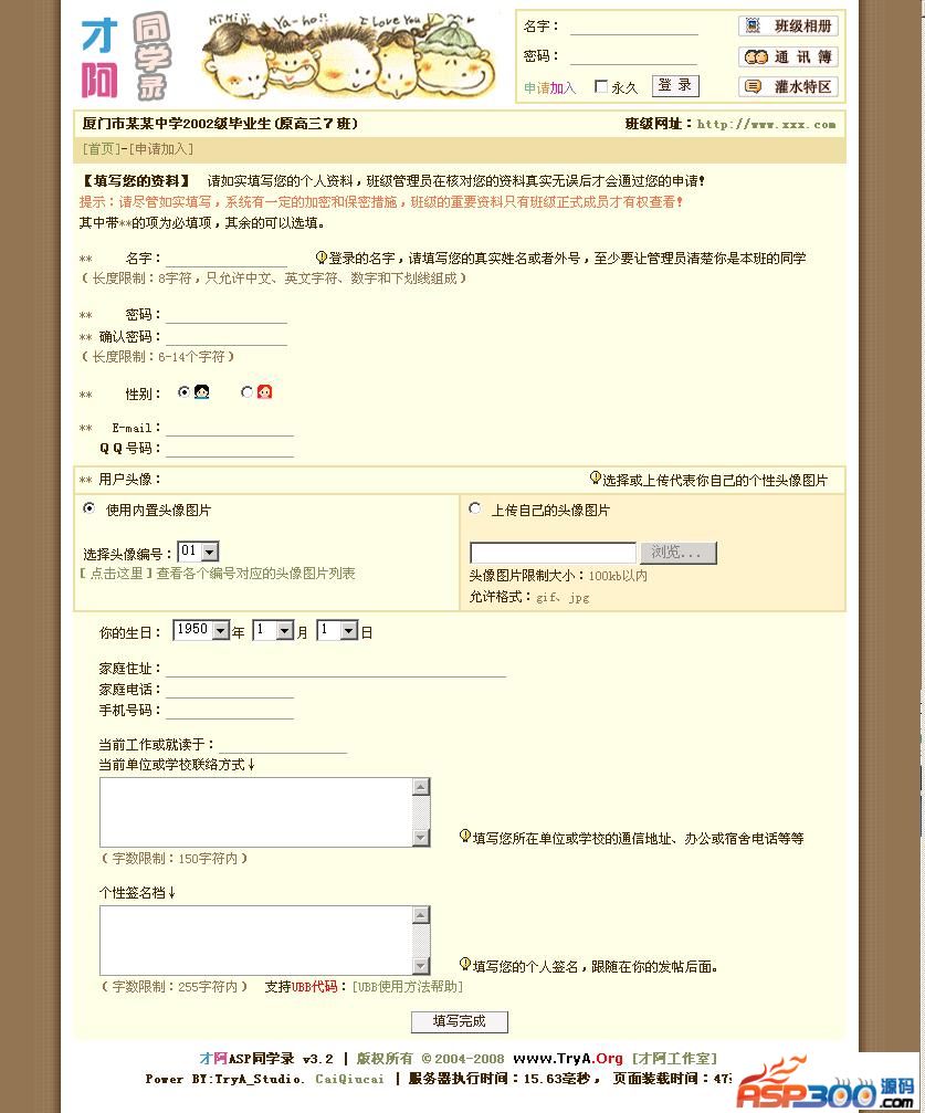 *主要组成:[班级相册]、[通讯簿]、[灌水特区]、[共享空间]、[站内消息]、[班级调查]