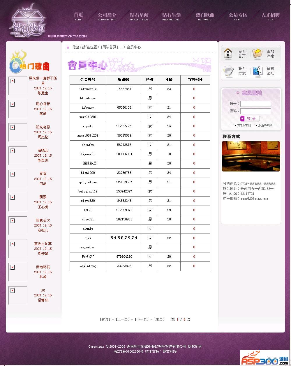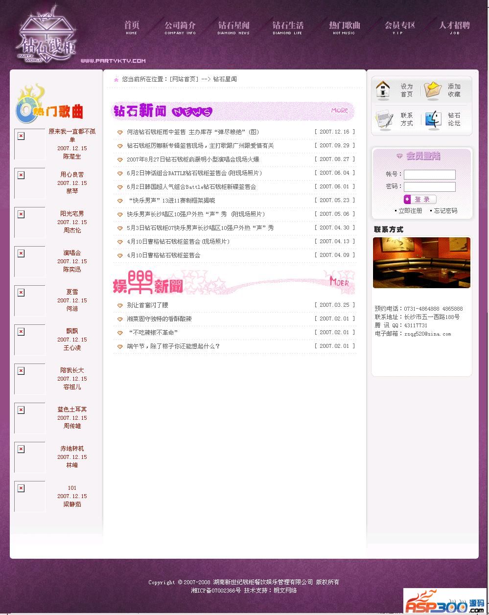 KTV娱乐管理平台网站系统源代码 深紫色风格