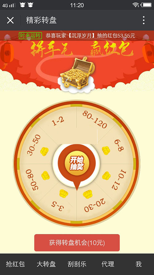 10、可根据抽红包次数,控制抽中红包大小,比如可以设置前两次抽的大,以后抽的小。