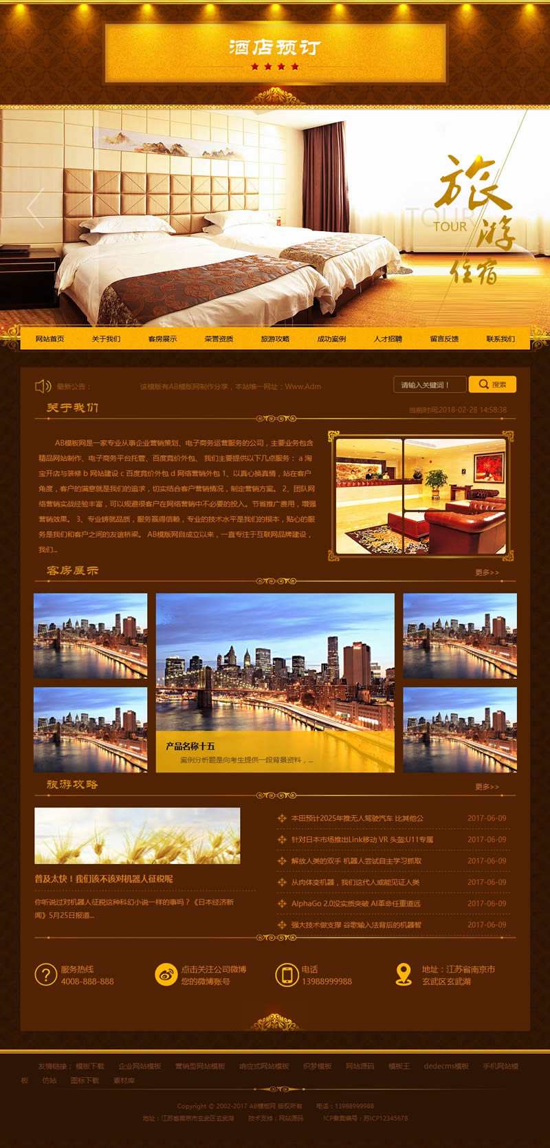 3、适用于酒店网站源码、客房旅馆网站模板;