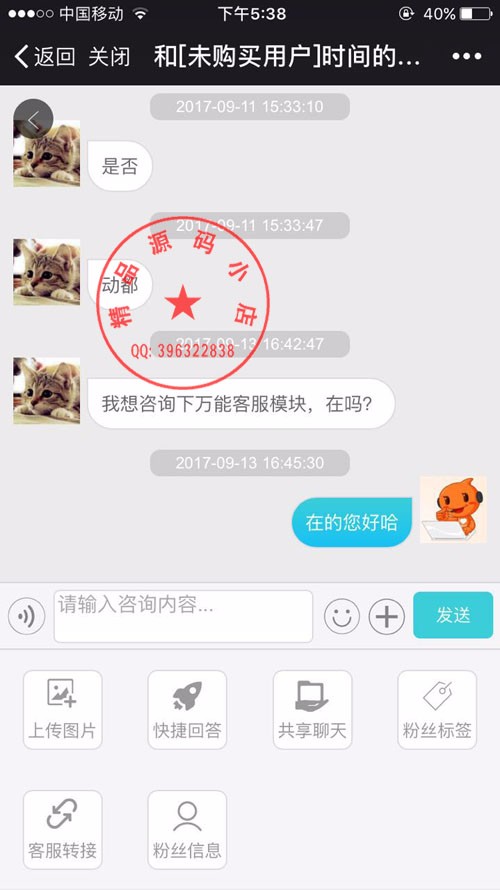 微信魔方+微擎+微赞通用 万能客服 10.5 + 万能客服PC端插件 1.0 解密开源微擎原版功能模块合集,强大的微信公众号客户服务功能模块,优化前端管理员可查询任意粉丝查看聊天记录,其他优化! ID:62585 声明:本站所有资源均来源于互联网收集,仅供学习参考使用,如若本站内容侵犯了原著者的合法权益,可联系我们进行处理。