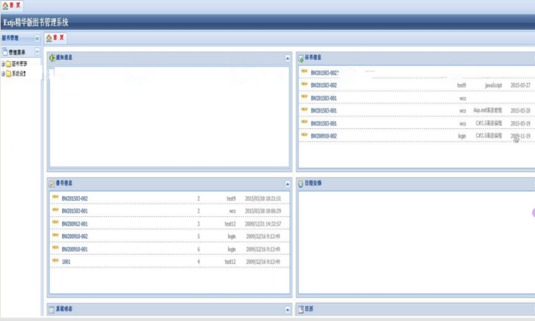 Extjs精华版图书管理系统功能比较强大。该源码 图书管理系统功能实现不是重点,重点是演示对Extjs二次封装使用,进行深入学习。 比较适合对Extjs的学习和进阶以及商业应用,有需要的朋友们不要错过啊。