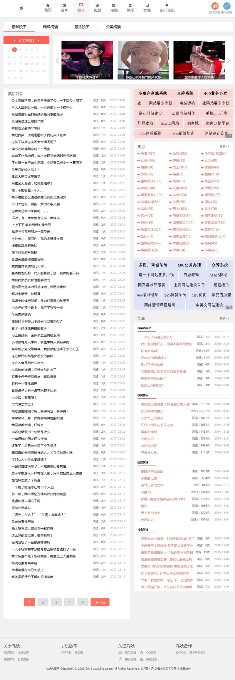 最新92kaifa仿《九妖笑话》段子网站源码分享,帝国CMS内核开发带手机版,带火车头采集,PC同步生成WAP,TAG静态生成,更利于搜索引擎,非漂亮的段子图片视频一体的笑话网站,PC+WAP带采集,模板整洁优雅,首页有一个标签编辑功能,很讨网友喜欢的。