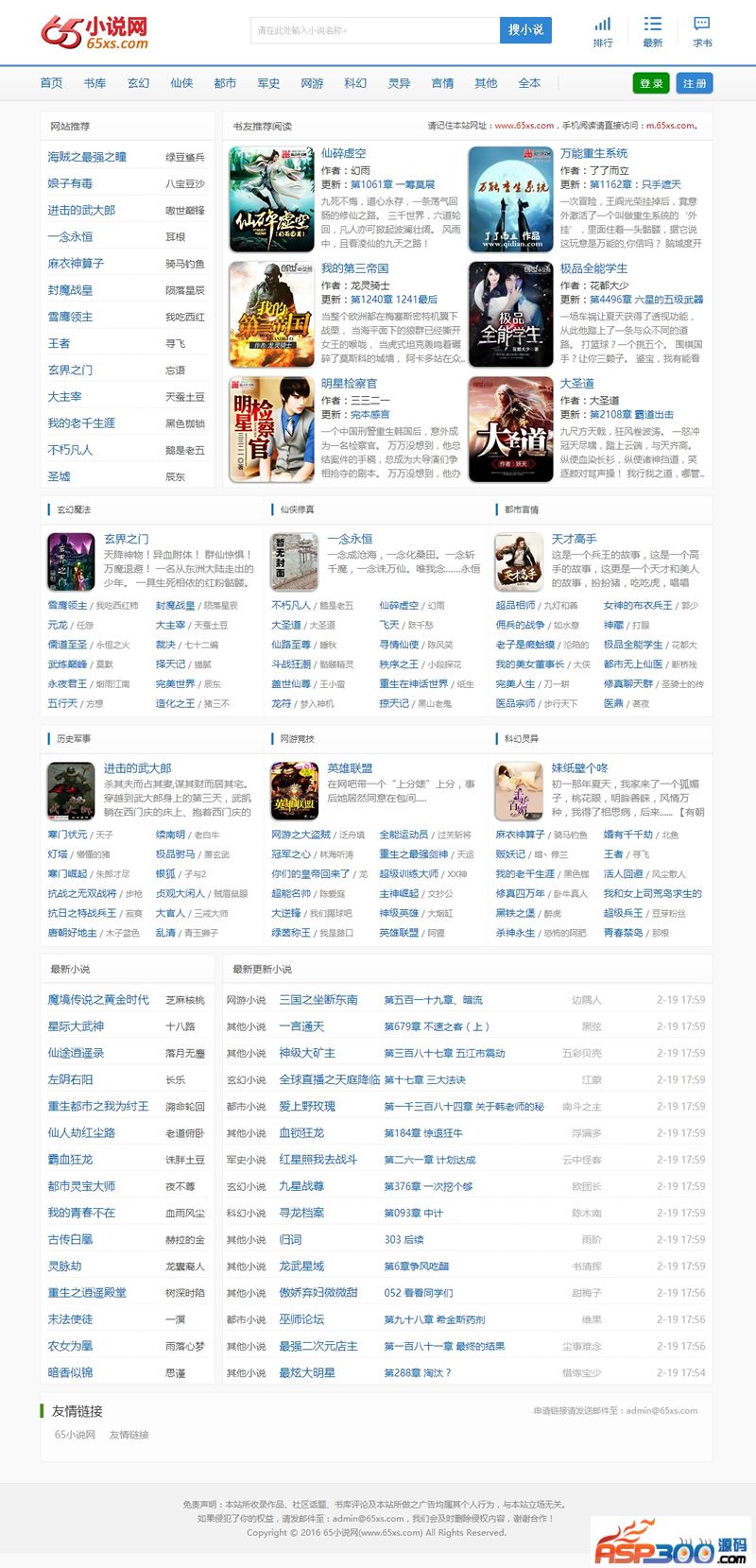 2017年最新高仿65小说网,非常不错的一款源码,大宝我修复了部分BUG!本源码是jieqicms内核,界面非常的好看,附带了小说WAP版本,以及后台可以切换多套模板,也可以封装成APP,非常的不错!分享给大家!
