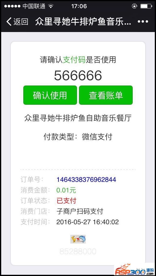 3.客户扫描二维码后支付(或者修改金额后支付)。