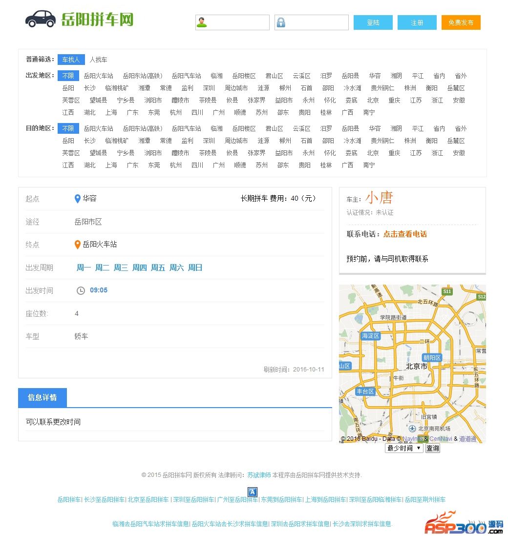 其他说明:最新岳阳拼车网源码整站打包,支持微信、手机端,数据同步。
