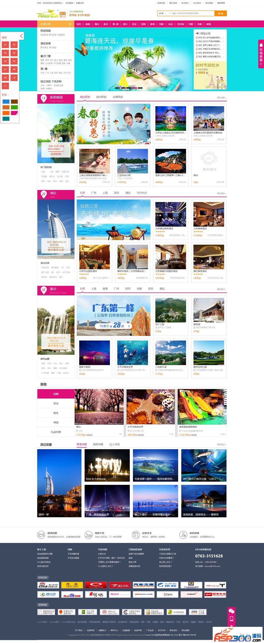 其他说明:TourEx B2C旅游网站管理系统,是一款基于微软ASP.NET平台开发,三网合一(PC、WAP、微信)的产品。集成旅游线路、酒店、景点、机票、租车、签证、目的地、游记攻略、团购、积分商城、导游、营销策略、通用模块、专题、新闻等功能于一体的高级旅游网站管理系统。作为国内最受欢迎的.NET类网站系统之一,TourEx B2C在不断提升用户服务、提高产品质量的同时更加注重用户体验。从系统研发至今,历经了数百次的更新修改后,网站的架设与管理变得更加轻松及便捷。全站实现傻瓜式编辑,让不具备专业网站技术的人都可以轻松、快速搭建自己的旅游网上商城。系统全面解决旅行社开店难、推广难、运营难、装修难等诸多老大难问题,让旅行社在电子商务的蓝海中获取收获