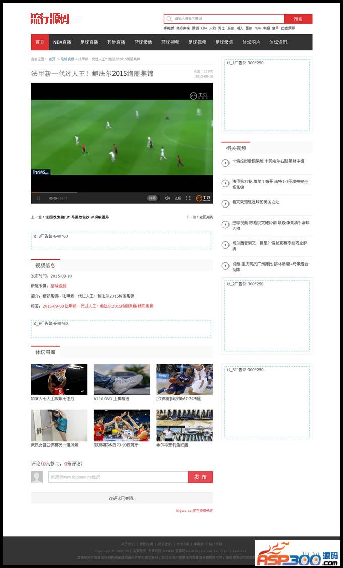 仿直播8大气的足球篮球赛事直播网站,非常不错,帝国cms内核,可以调用腾讯啊 优酷啊这些视频播放,还是不错的,可以做做看,给你的网站做个体育直播的频道也是不错