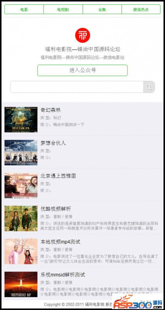 适用范围: 福利视频源码,微信小视屏源码,男人福利电影源码,微信在线电影源码,微信小电影源码