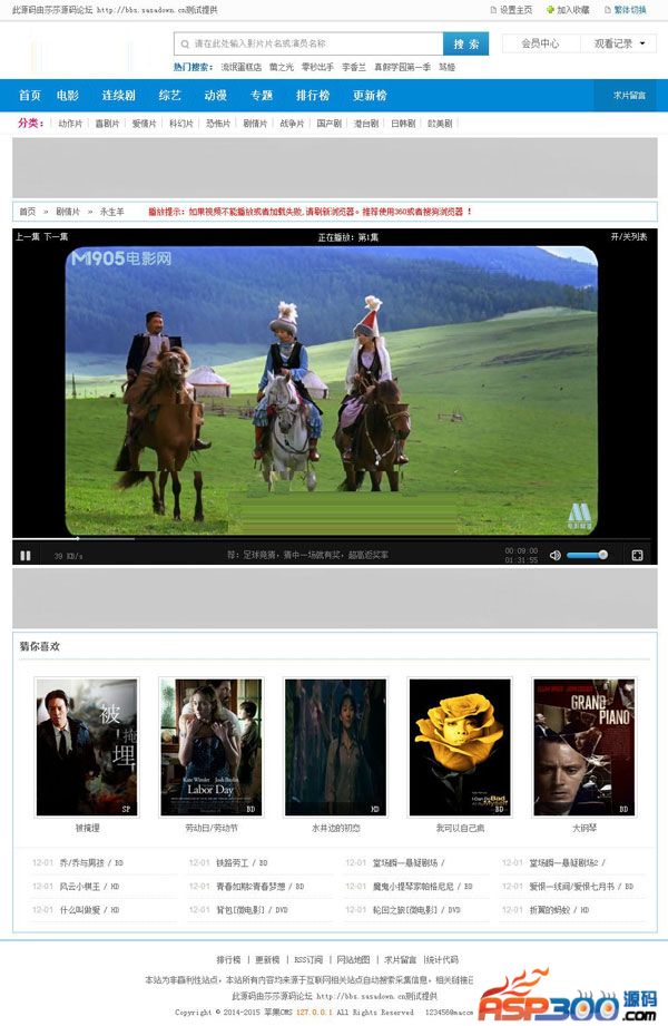 php+mysql影视网站源码,苹果CMS影视建站系统天蓝色大气模板,另外加上后台可以一键采集,非常不错的电影网站程序,在这里完全免费分享了。 ID:59488 声明:本站所有资源均来源于互联网收集,仅供学习参考使用,如若本站内容侵犯了原著者的合法权益,可联系我们进行处理。