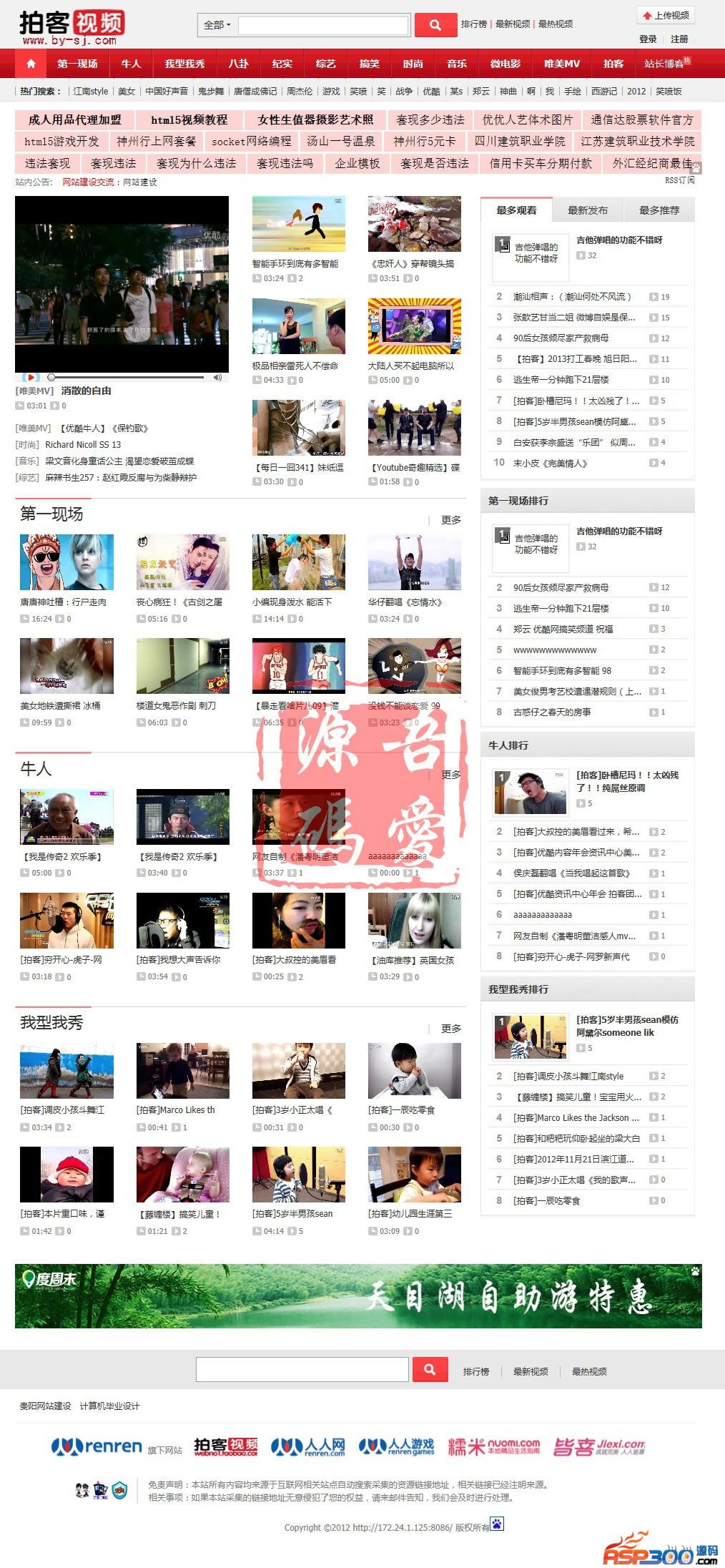 其他说明:高仿拍客视频分享网,仿搜狐视频网,DESTOON内核,一键采集优酷等视频资源,但是没有火车头方便,整合了多说评论,模板很老套,不知道有没有人喜欢,送给需要的朋友吧!