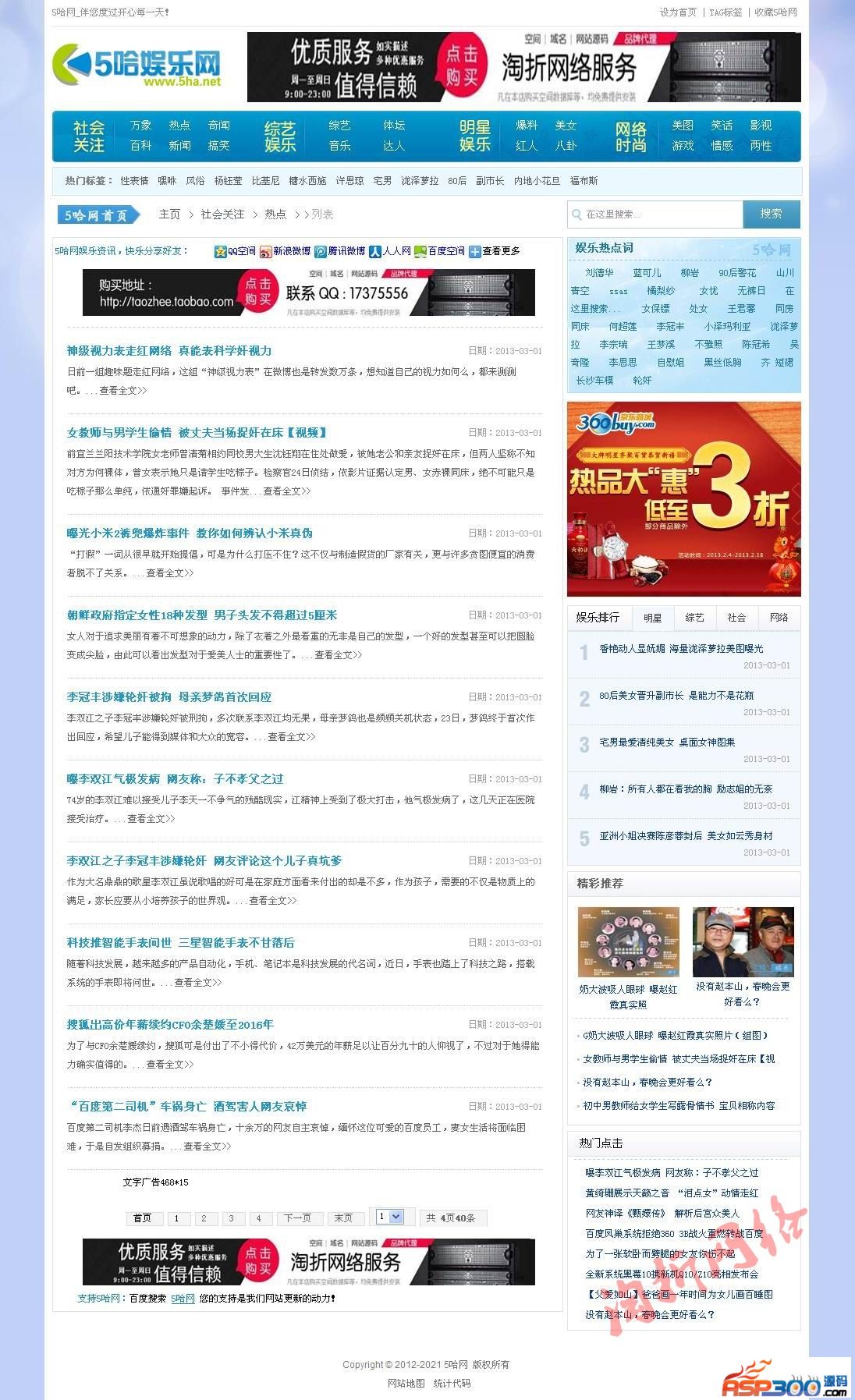 dede5.7五哈娱乐快讯网PHP源码,娱乐网站dedecms源码模板程序