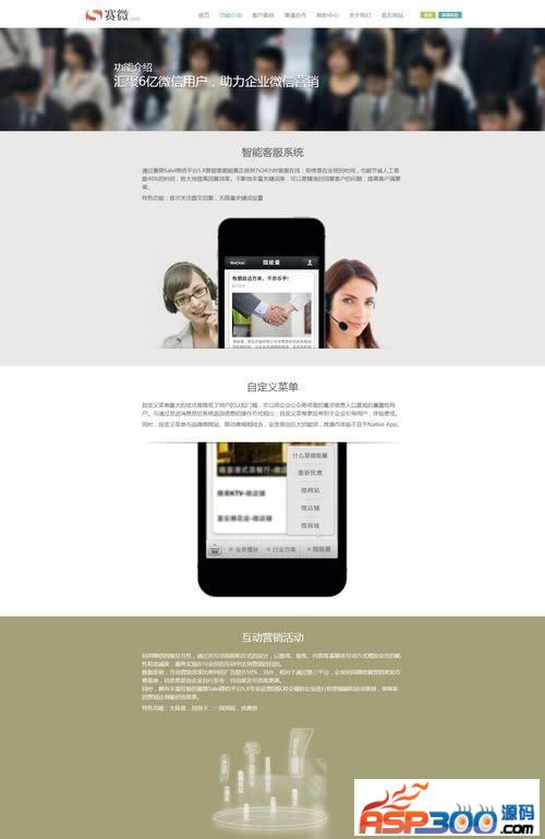 赛微Saivi微信商业化应用平台集微信3G网站、微商城、微团购、微信会员卡、微信优惠券及大转盘、刮刮乐等数十种微信营销功能于一体的微服务体系。为客户提供传播、新客开拓、顾客管理、智能客服及在线服务等微信营销运营服务,依托强大的微信营销软件系统,引导国内众多企业迈进移动互联微营销时代。赛微源码起源于2013年微营销开发市场上的主流源码,开发者为公司运营购买了一套微信源码,使用过程中发现诸多问题,而当时的开发者卖出源码后却迟迟不做更新,致使问题越积越多。自此,赛微源码开发者便召集了一批志同道合的开发爱好者,开始了集修复BUG、升级功能、创新模板等一系列微运营源码开发。